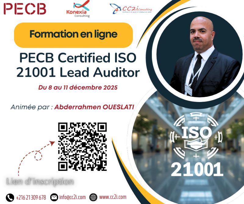 PECB ISO21001 LeadAuditor Audit CC2i KonexiaConsulting Qualité SMOE Certification
