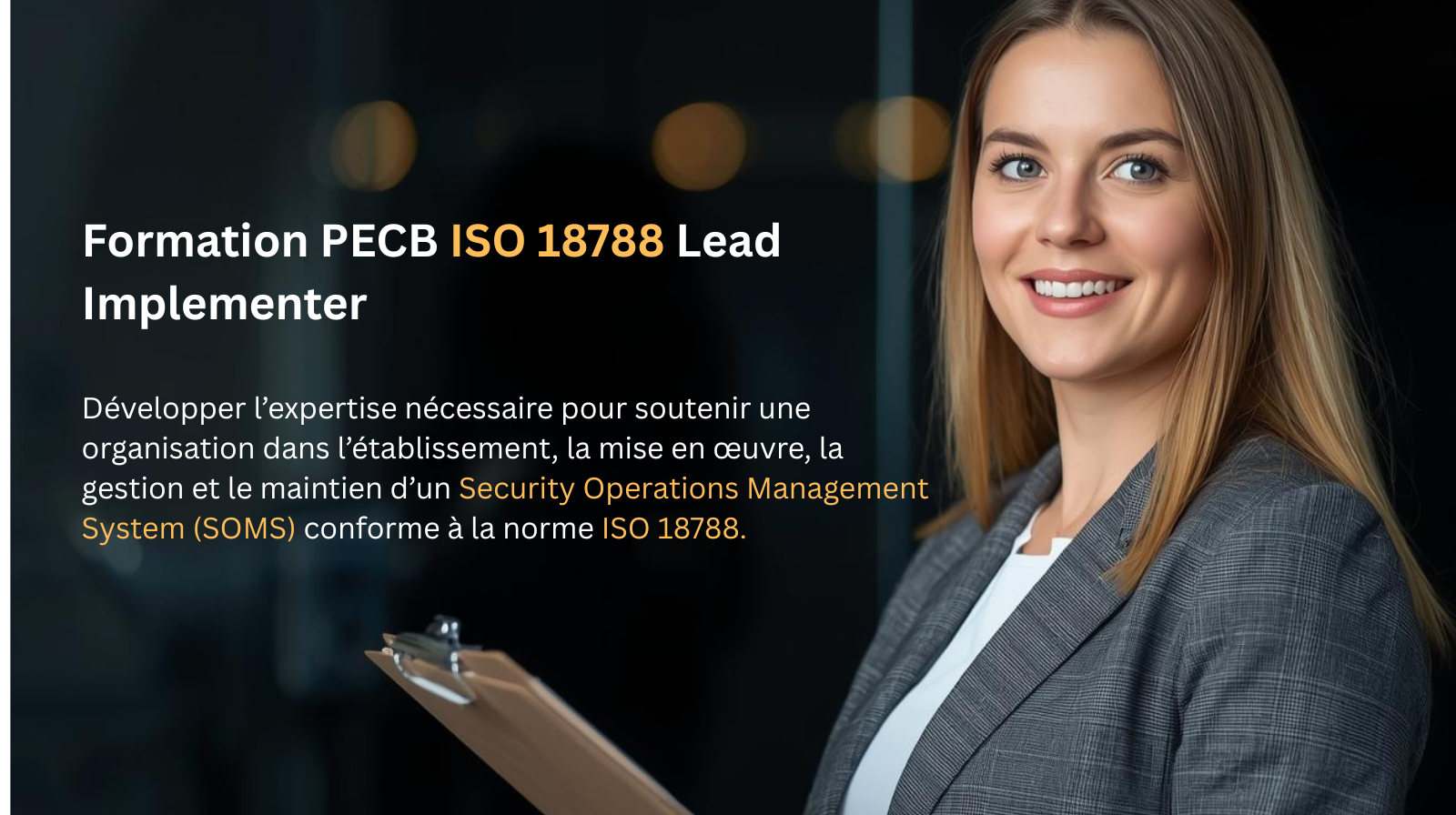 La formation ISO 18788 Lead Implementer vous permet de développer l’expertise nécessaire pour soutenir une organisation dans l’établissement, la mise en œuvre, la gestion et le maintien d’un Security Operations Management System (SOMS) conforme à la norme ISO 18788. La mise en œuvre d’un SOMS garantit la protection des vies et des biens des clients, tout en respectant les libertés fondamentales, les droits humains et les lois nationales et internationales.