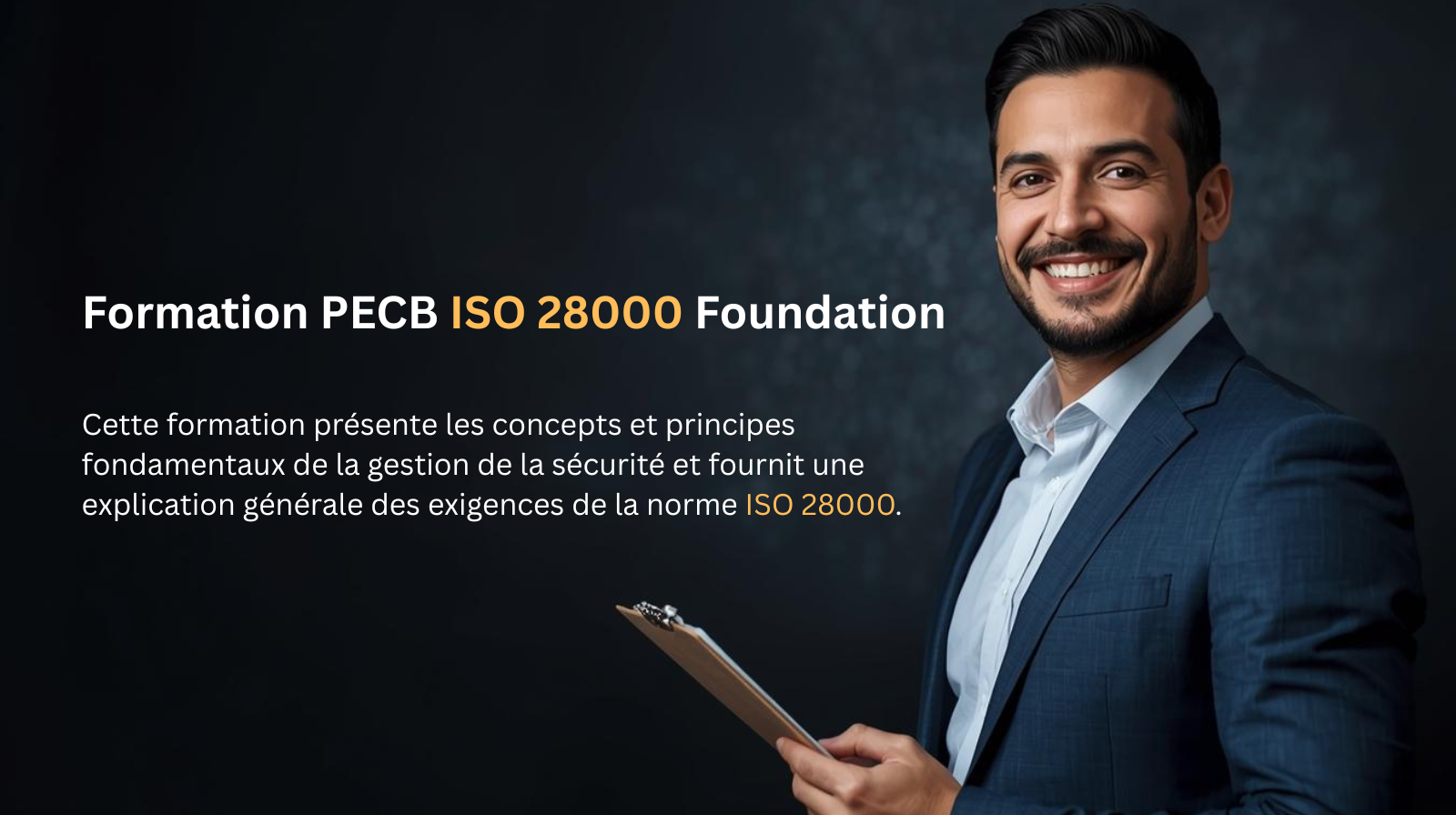 La formation PECB ISO 28000 Foundation présente les concepts et principes fondamentaux de la gestion de la sécurité et fournit une explication générale des exigences de la norme ISO 28000.