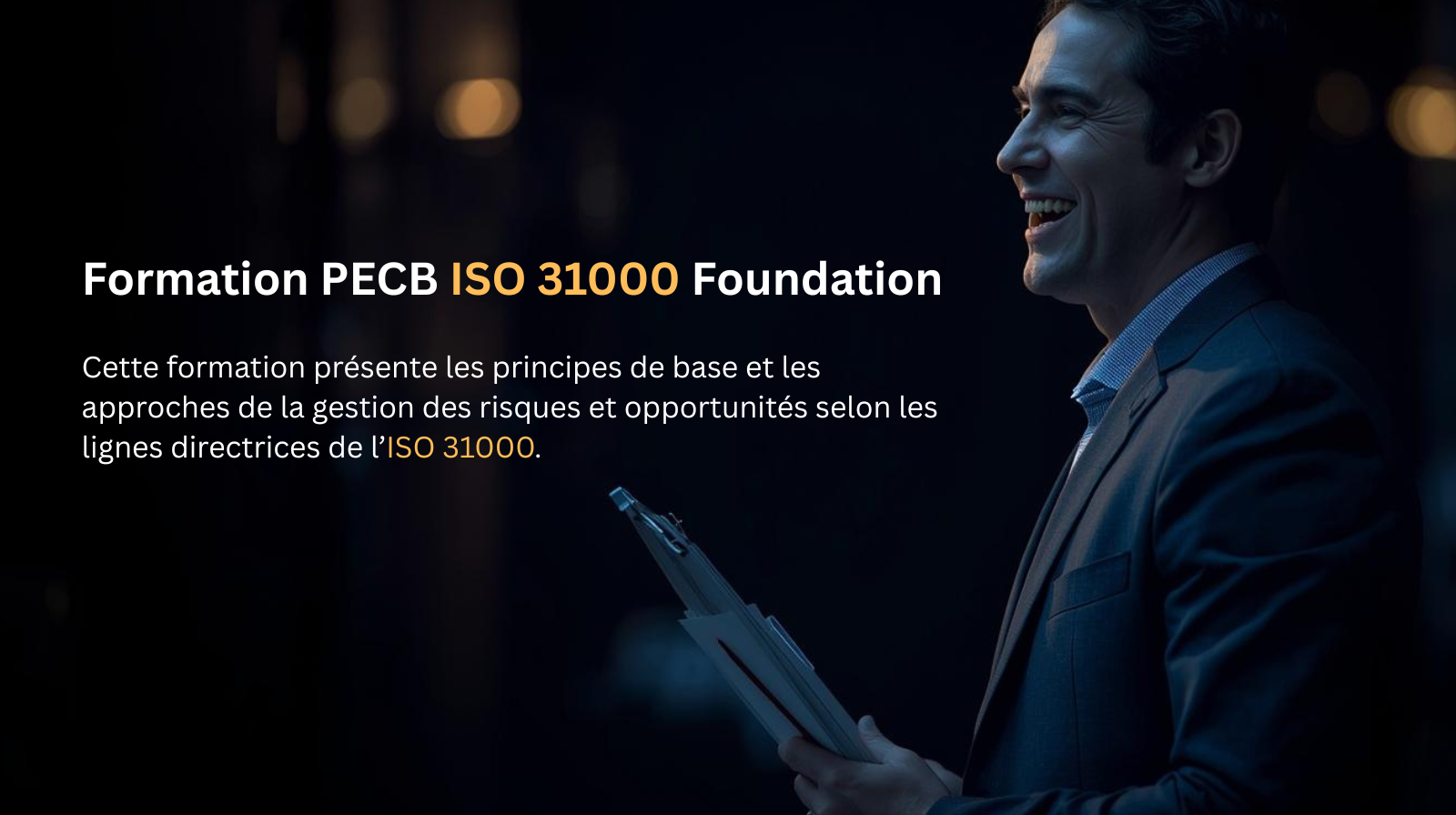La formation ISO 31000 Foundation présente les principes de base et les approches de la gestion des risques et opportunités selon les lignes directrices de l’ISO 31000. Cette formation se concentre sur les principaux composants de l’ISO 31000 : les termes et définitions de base, les principes de la gestion des risques, le cadre de gestion des risques et le processus de gestion des risques. De plus, chaque étape du processus de gestion des risques est analysée et détaillée individuellement.