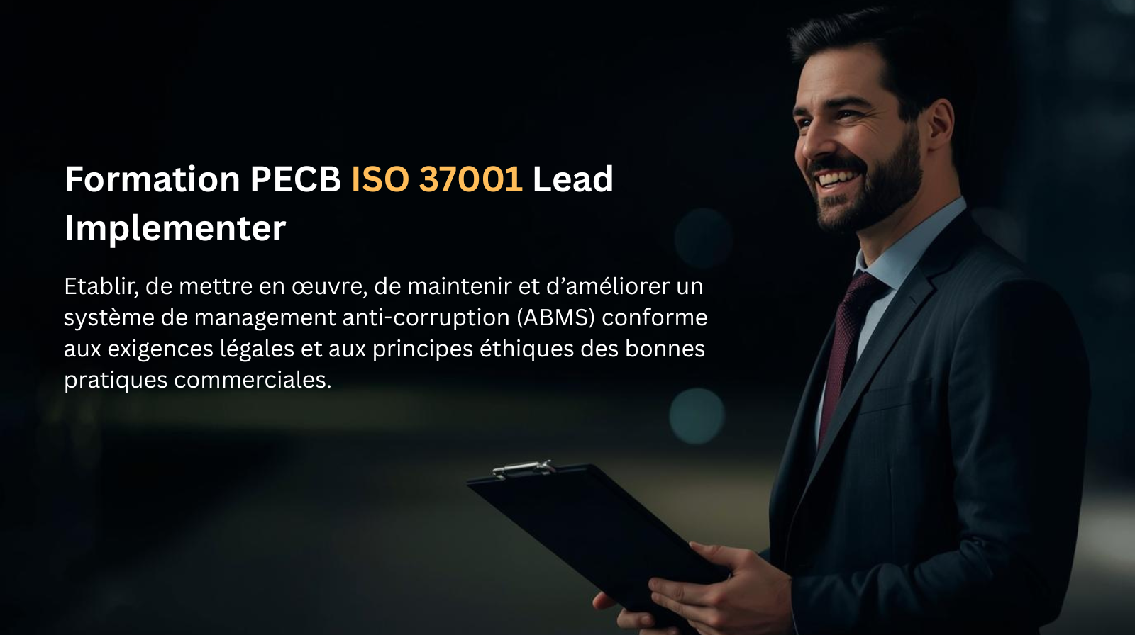La formation PECB Certified ISO 37001 Lead Implementer fournit un cadre structuré permettant aux organisations d’établir, de mettre en œuvre, de maintenir et d’améliorer un système de management anti-corruption (ABMS) conforme aux exigences légales et aux principes éthiques des bonnes pratiques commerciales.