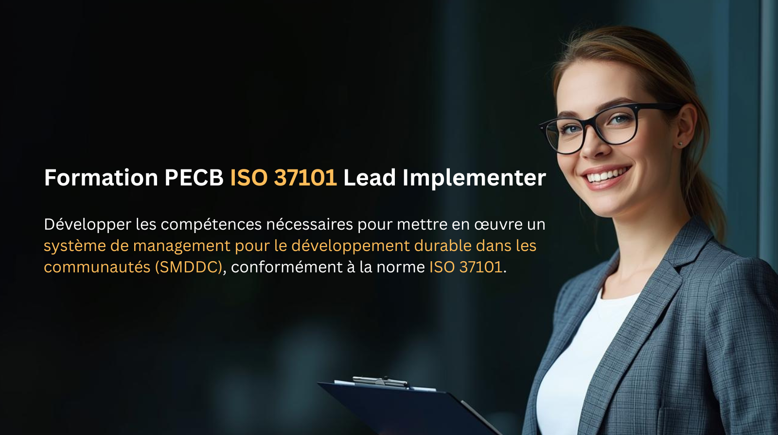 La formation PECB ISO 37101 Lead Implementer vous permet de développer les compétences nécessaires pour mettre en œuvre un système de management pour le développement durable dans les communautés (SMDDC), conformément à la norme ISO 37101. Cette norme internationale vise à aider les communautés de toutes tailles et de tous types à devenir plus durables et résilientes.