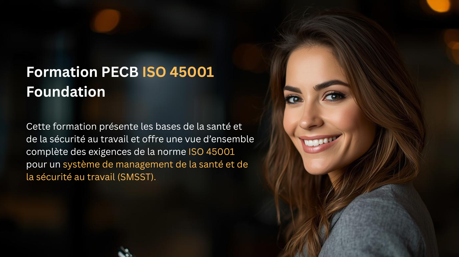 La formation PECB Certified ISO 45001 Foundation présente les bases de la santé et de la sécurité au travail et offre une vue d’ensemble complète des exigences de la norme ISO 45001 pour un système de management de la santé et de la sécurité au travail (SMSST).