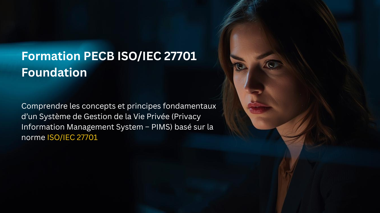 La formation ISO/IEC 27701 Foundation est conçue pour aider les participants à comprendre les concepts et principes fondamentaux d’un Système de Gestion de la Vie Privée (Privacy Information Management System – PIMS) basé sur la norme ISO/IEC 27701.